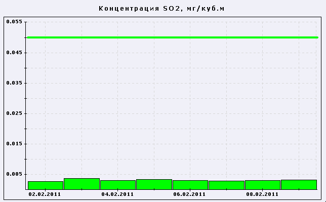 ПДК среднесуточная диоксида серы SO2 = 0.05 мг/куб.м
