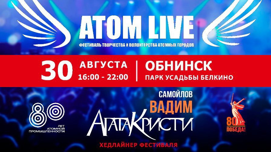 Фестиваль творчества и волонтёрства атомных городов Атом Live - 2025, посвящённый 80-летию Великой Победы и 80-летию атомной промышленности, пройдёт в Обнинске 30 августа.