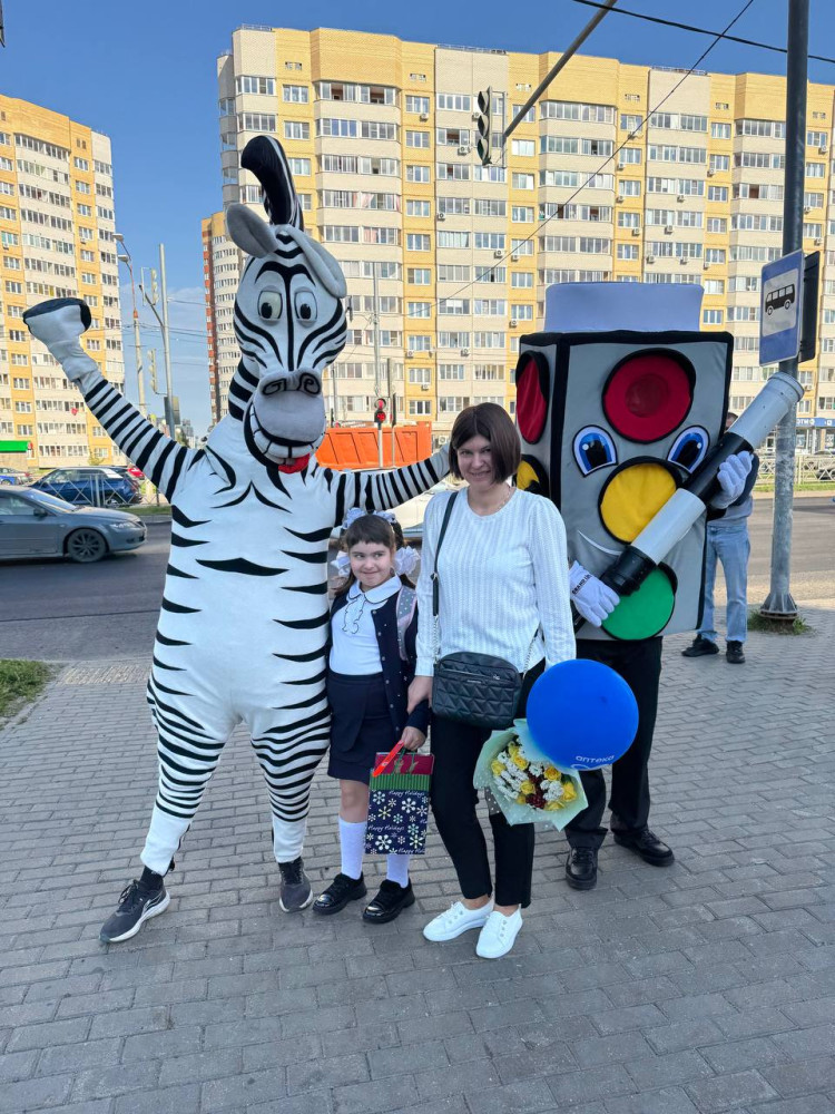 По уже сложившейся традиции в акции принимала участие ростовая кукла Зебра Марти – этот персонаж хорошо известен детям Обнинска, и в этом году у него появилась компания – ростовая кукла Светофор, подаренная городу компанией Grand Line.