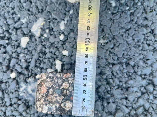 На шести участках были взяты керны, которые специалисты исследовали на ряд показателей, таких как толщина слоя асфальта, плотность, сцепление между нижним и верхним слоями.