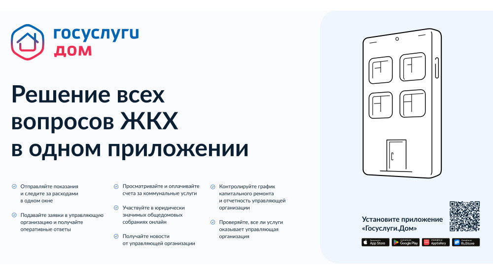 Теперь все услуги по управлению жилым фондом и коммунальными платежами доступны прямо у вас в кармане! Мобильное приложение Госуслуги.Дом — ваш личный помощник в вопросах жилья и коммунальных услуг.
