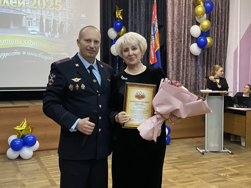 Руководство ОМВД России по городу Обнинску и члены Общественного совета приняли участие в торжественном мероприятии в Техническом лицее, приуроченном к 55-летию учебного заведения.