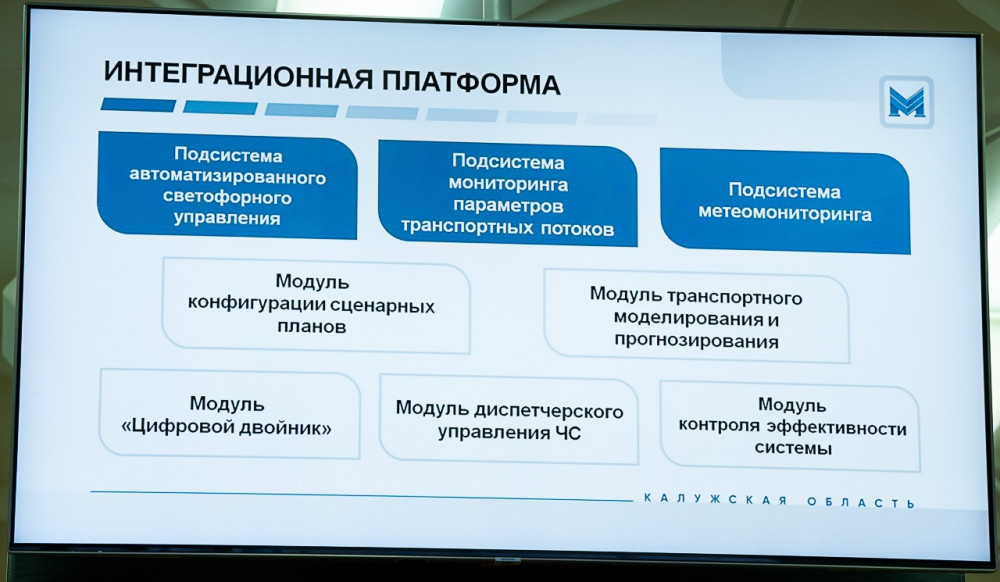 С 2022 по 2024 годы была создана интеграционная платформа, включающая три подсистемы: автоматизированного светофорного управления, мониторинга параметров транспортных потоков метеомониторинга. Для регулирования параметров дорожного движения на 61 светофорных объектах, из которых 50 расположены в Калуге и 11 в Обнинске, заменены 321 транспортных и 176 пешеходных светофоров, а также 34 вызывных пешеходных табло. Для мониторинга интенсивности транспортного потока установлены 269 детекторов транспорта, из которых 221 в Калуге и 48 в Обнинске. Подсистема метеомониторинга интегрирована с 37 метеостанциями.