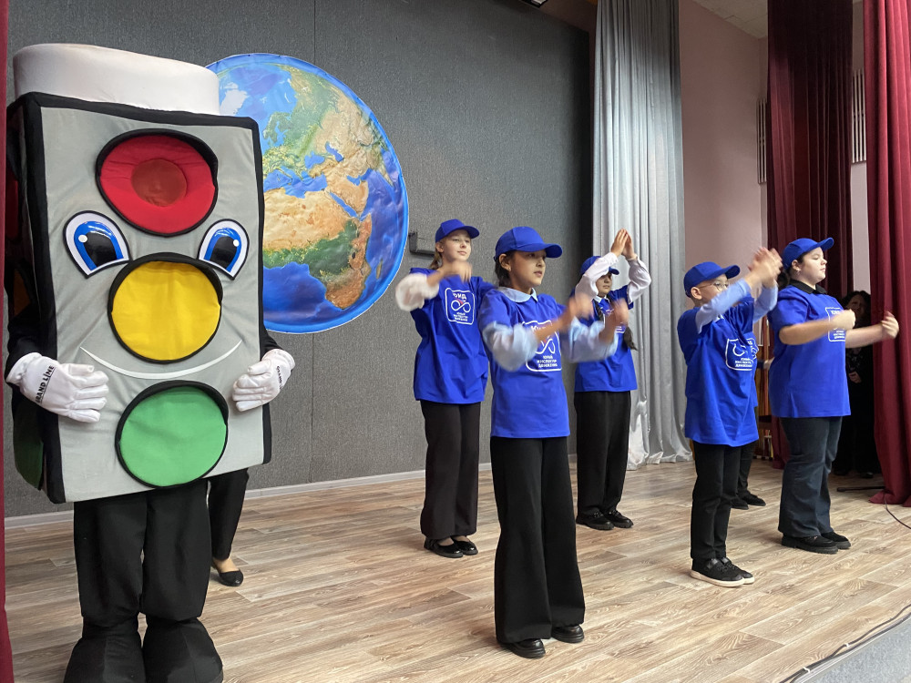 Для юных участников дорожного движения была подготовлена интересная познавательная программа. Изучение Правил дорожного движения проходило в формате подвижных игр. Вместе с отрядом юных инспекторов дорожного движения и ростовой куклой «Светофор» школьники не только смотрели и слушали выступающих на сцене, но и вместе с ними танцевали, пели, смотрели обучающие мультфильмы и запоминали стихи.