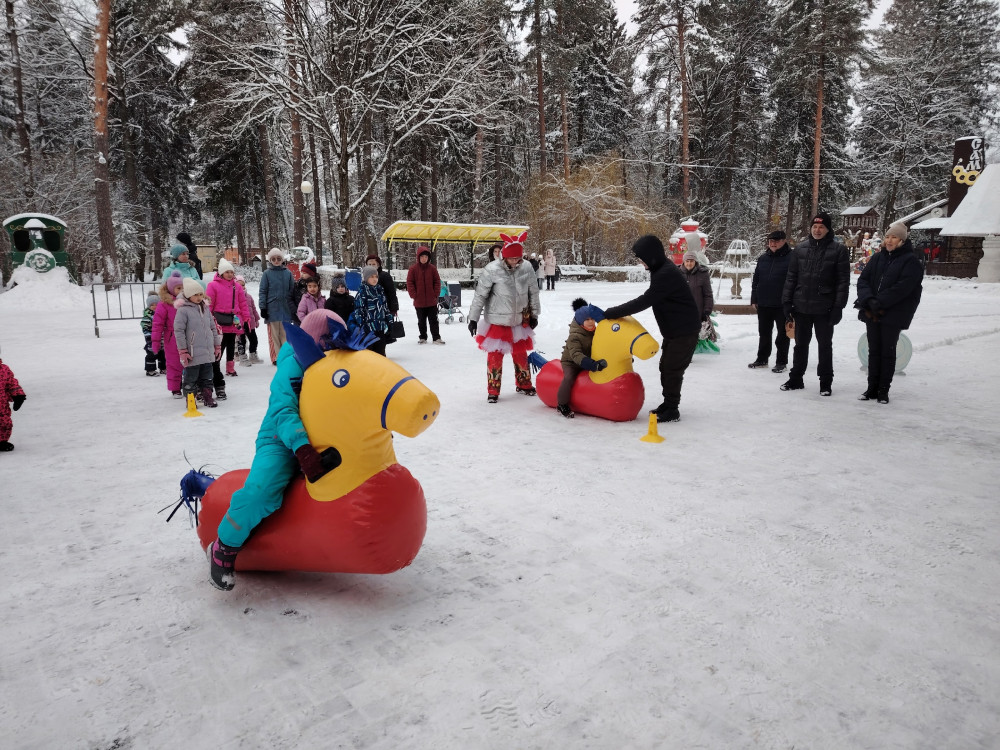 В парке продолжается череда новогодних праздников: игры у новогодней ёлки, работа Дома Снежной Бабы.