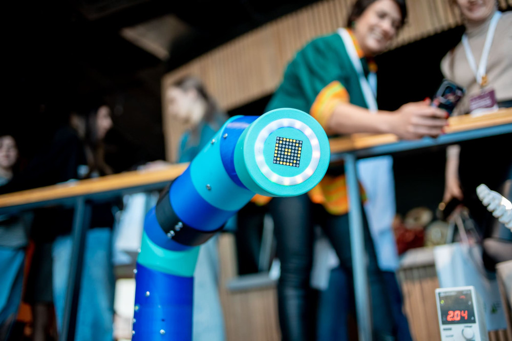 Особое внимание гостей привлекла инсталляция The Glitcher: бюст философа с внутренней полостью, заполненной мерцающим слаймом, который перемешивает робот-манипулятор. По словам авторов работы, она создана для наблюдения за мыслительным процессом и открыта для свободной интерпретации каждым зрителем.