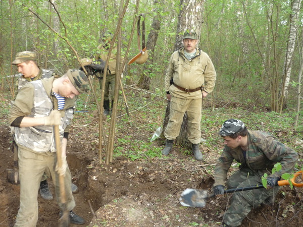 Экспедиция к деревне Барсуки Мосальского района. Найдено и захоронено совместно с КО ВПОО «Военный историк» (г.Калуга) 59 красноармейцев. Медальонов при них не оказалось.