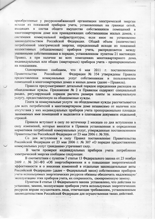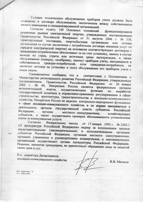 МИНРЕГИОН России по вопросу расчета платы за электрическую энергию