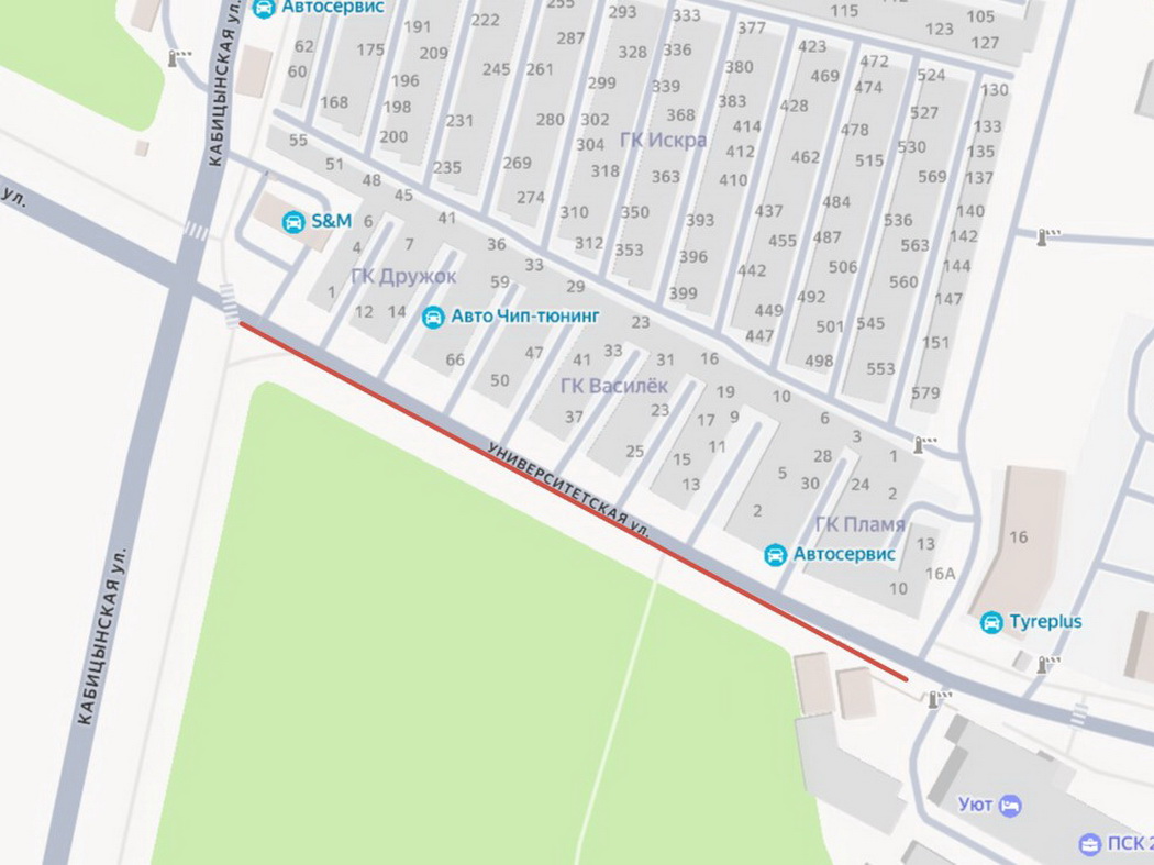 По решению Комиссии по обеспечению безопасности дорожного движения с целью обеспечения достаточной видимости и беспрепятственного движения транспорта вводятся ограничения на остановку и стоянку автомобилей на участке автомобильной дороги по улице Университетская от пересечения с улицей Кабицынская до дома № 16 улицы Кабицынская со стороны лесопарковой зоны.