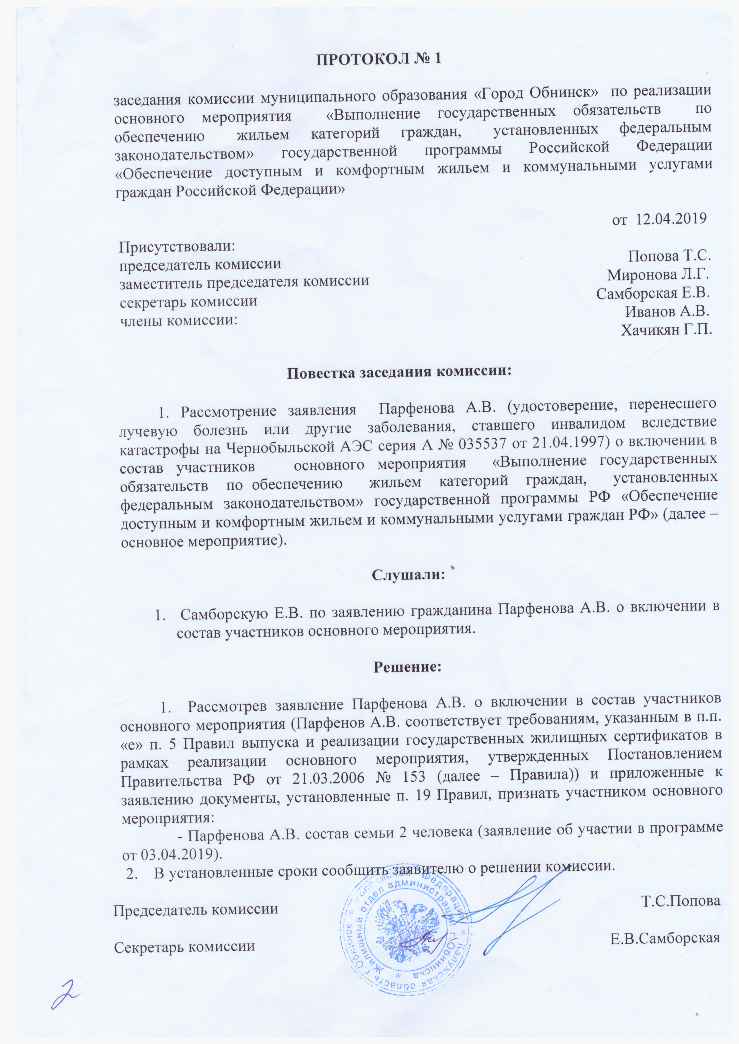 Комиссия по обеспечению реализации на территории МО «Город Обнинск» комплекса процессных мероприятий