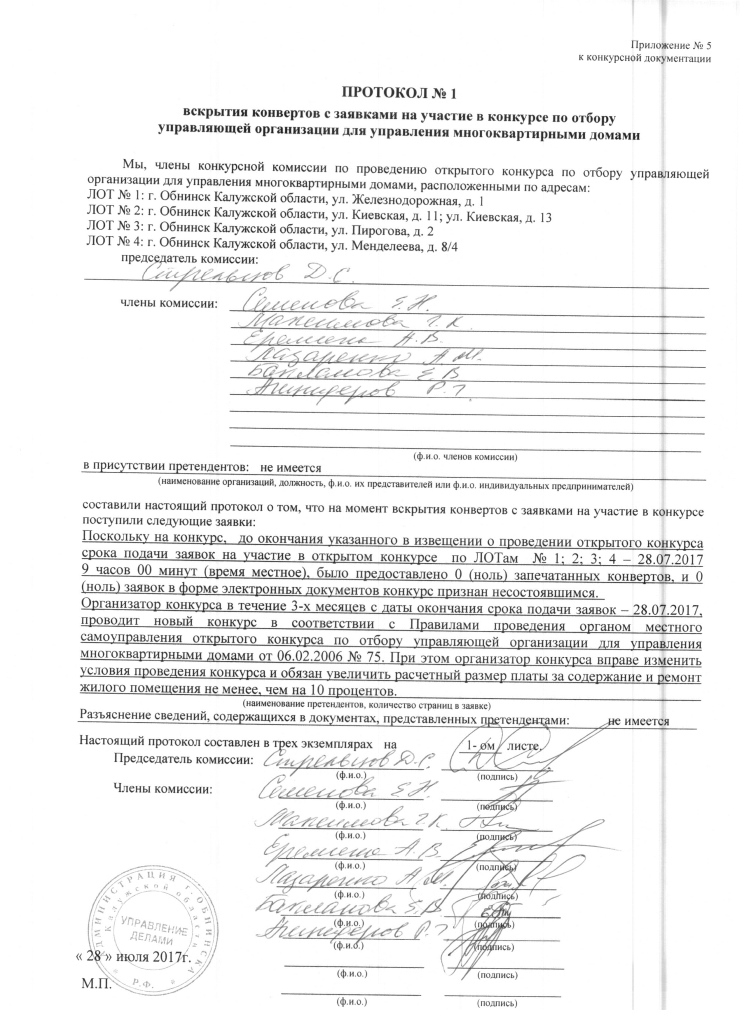 Комиссия по проведению открытого конкурса по отбору управляющей организации
