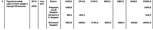1.3. В подразделе 4.2.1. раздела 4 Программы в паспорте подпрограммы «Доступная среда в городе Обнинске» пункт «Объёмы финансирования подпрограммы, в том числе по годам реализации» изложить в новой редакции: