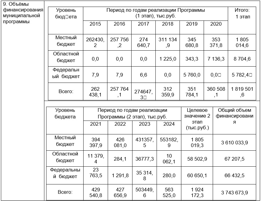 1.1. В паспорте муниципальной программы «Развитие культуры города Обнинска» (далее – Программа) пункт 9 «Объёмы финансирования муниципальной программы» изложить в следующей редакции: