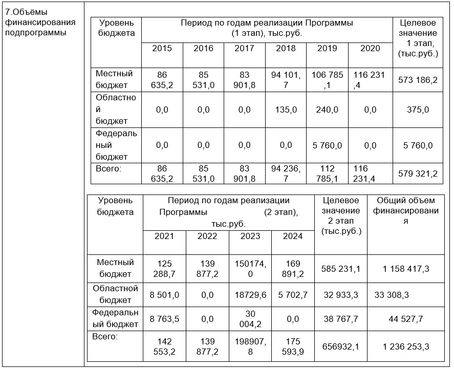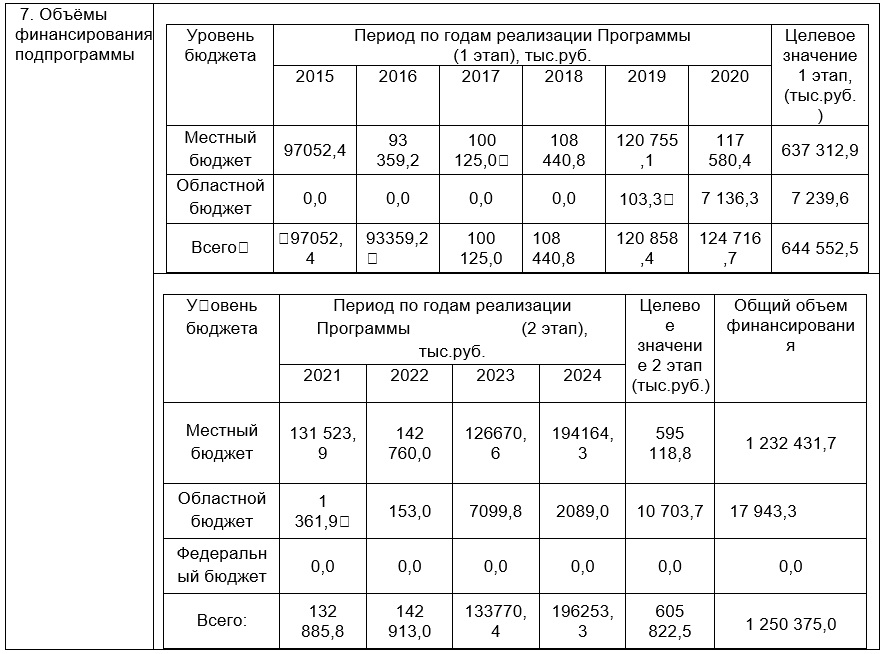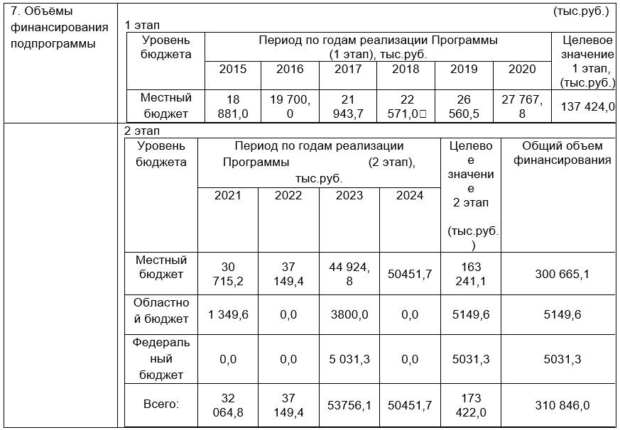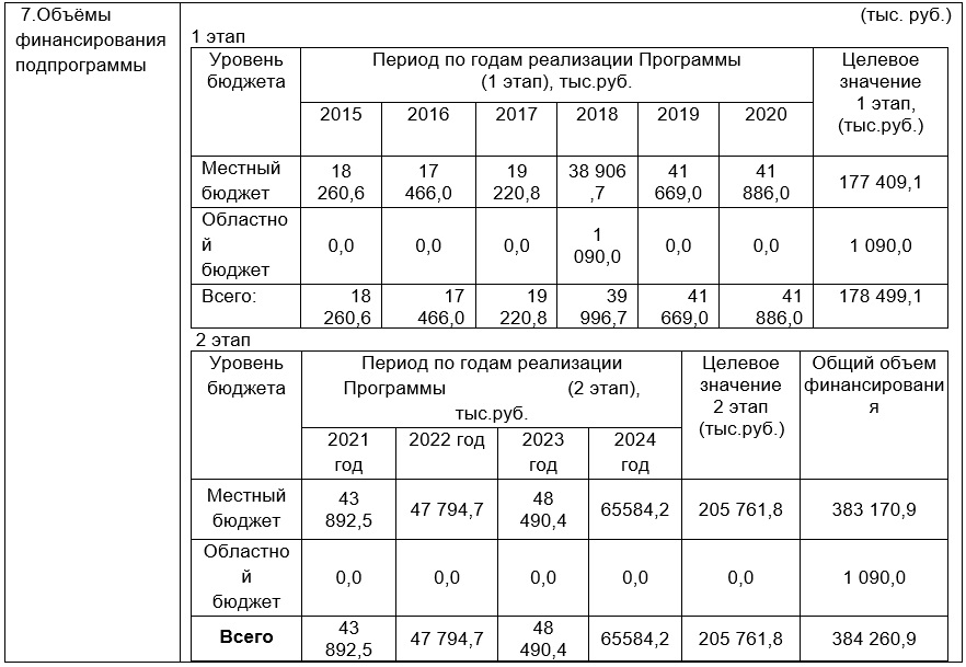 1.3. В подразделе 4.2.1. раздела 4 Программы в паспорте подпрограммы 2 «Поддержка и развитие муниципальных библиотек города Обнинска» пункт 7 «Объёмы финансирования подпрограммы» изложить в следующей редакции: