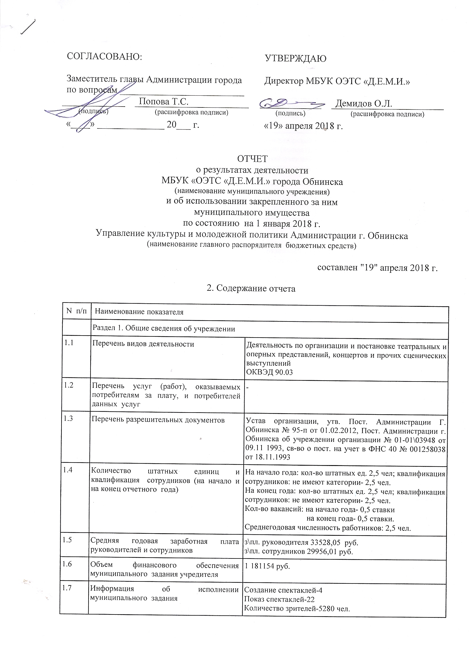 Отчет о результатах деятельности и об использовании закрепленного муниципального имущества на 01.01.2018г. (стр.1. , стр.2, стр.3, стр.4)