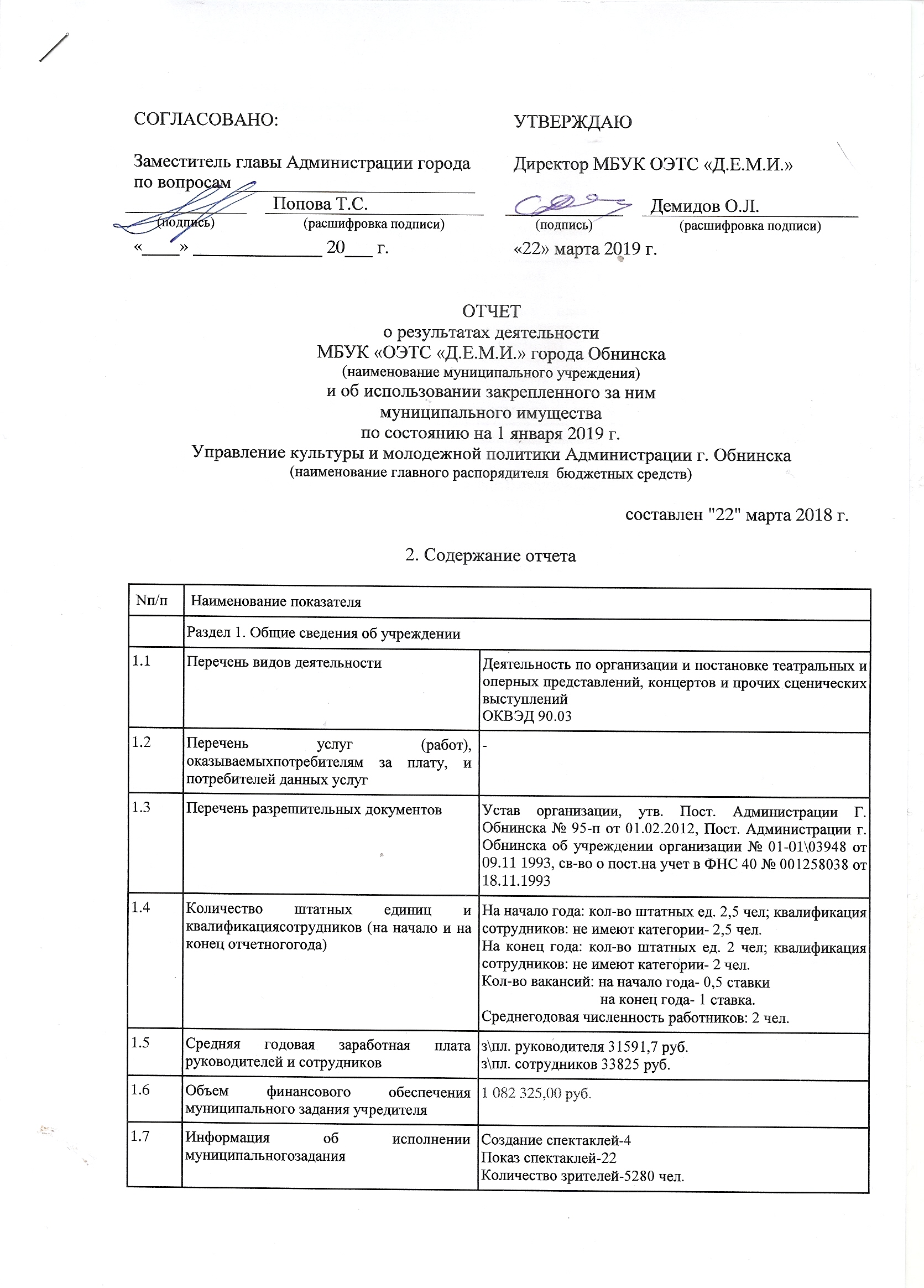 Отчет о результатах деятельности и об использовании закрепленного муниципального имущества на 01.01.2019г. (стр.1., стр.2, стр.3, стр.4)