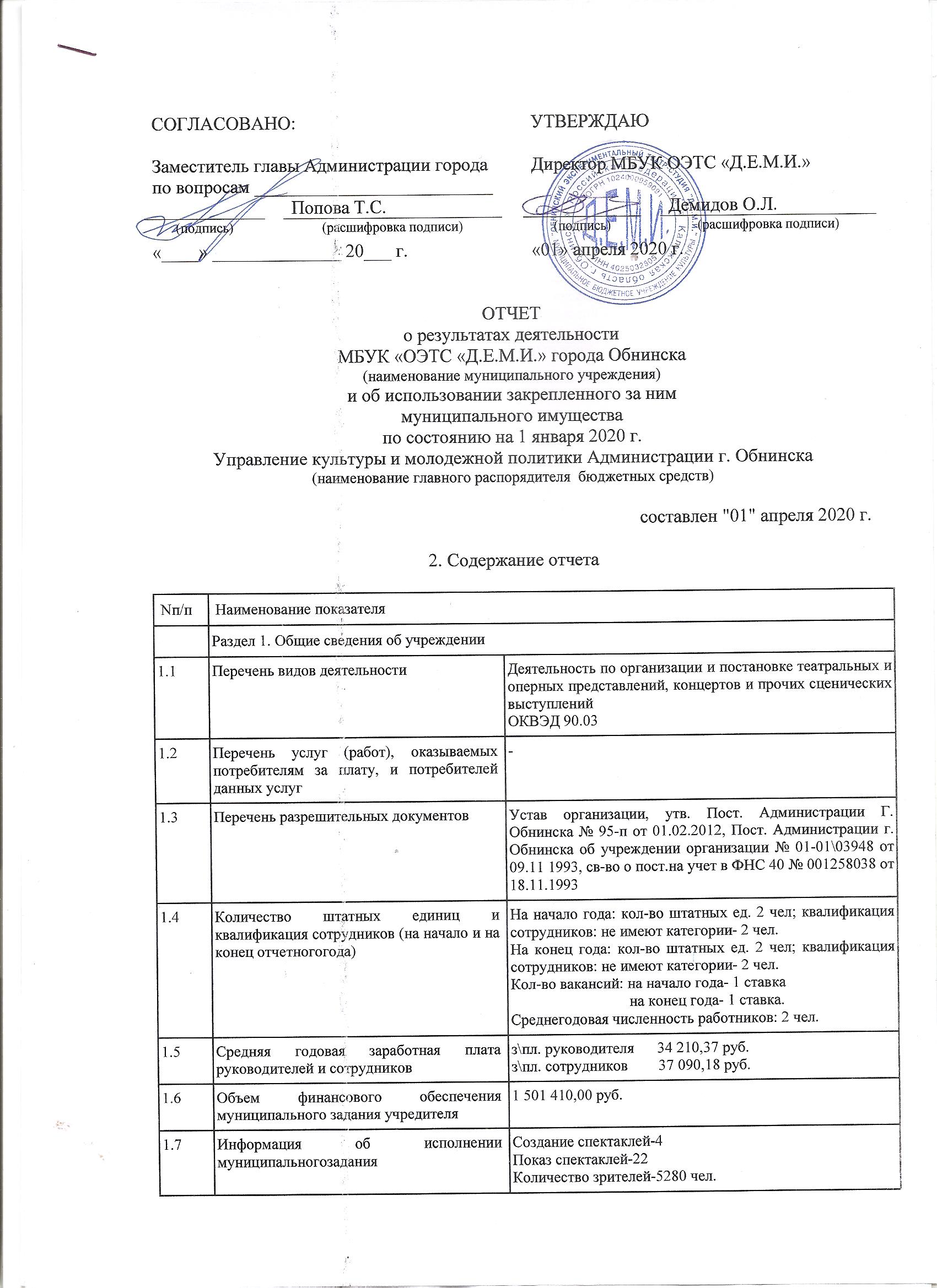 Отчет о результатах деятельности и об использовании закрепленного муниципального имущества на 01.01.2020г. (стр.1., стр.2, стр.3, стр.4)