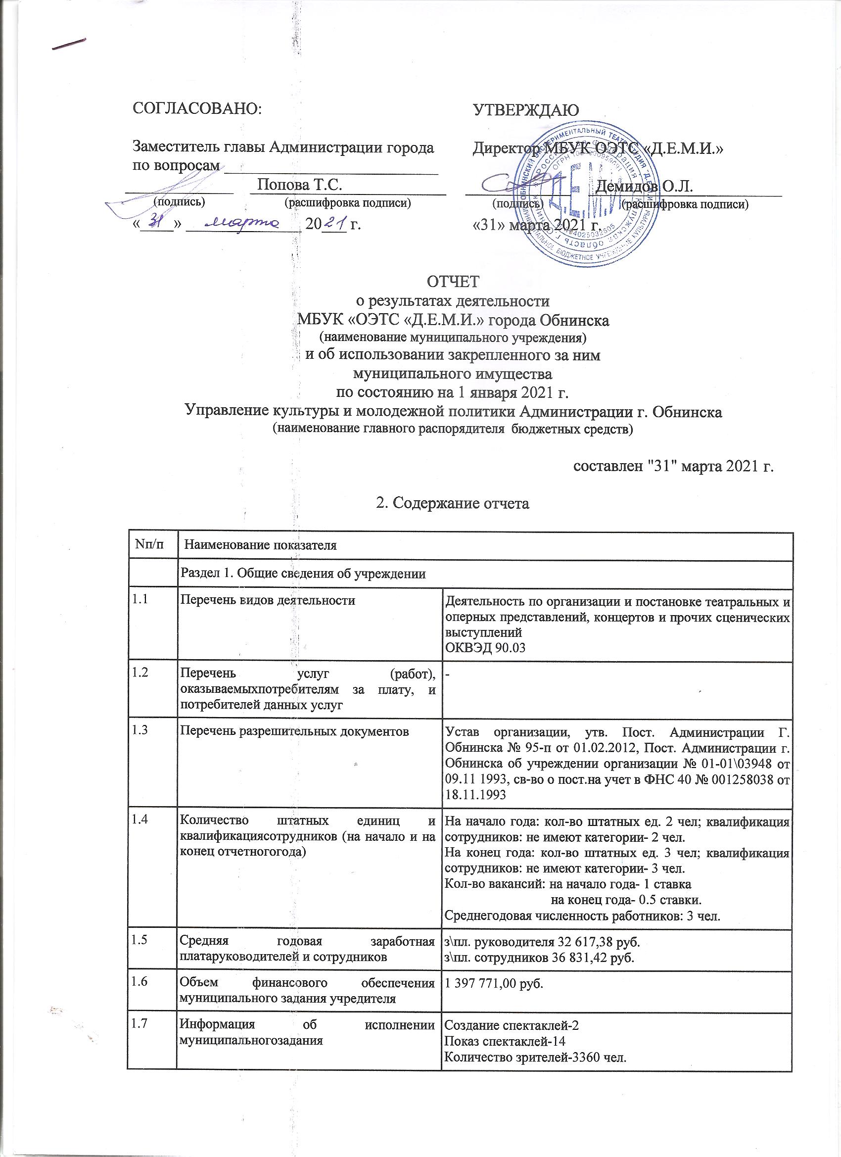 Отчет о результатах деятельности и об использовании закрепленного муниципального имущества на 01.01.2021г. (стр.1., стр.2, стр.3, стр.4)