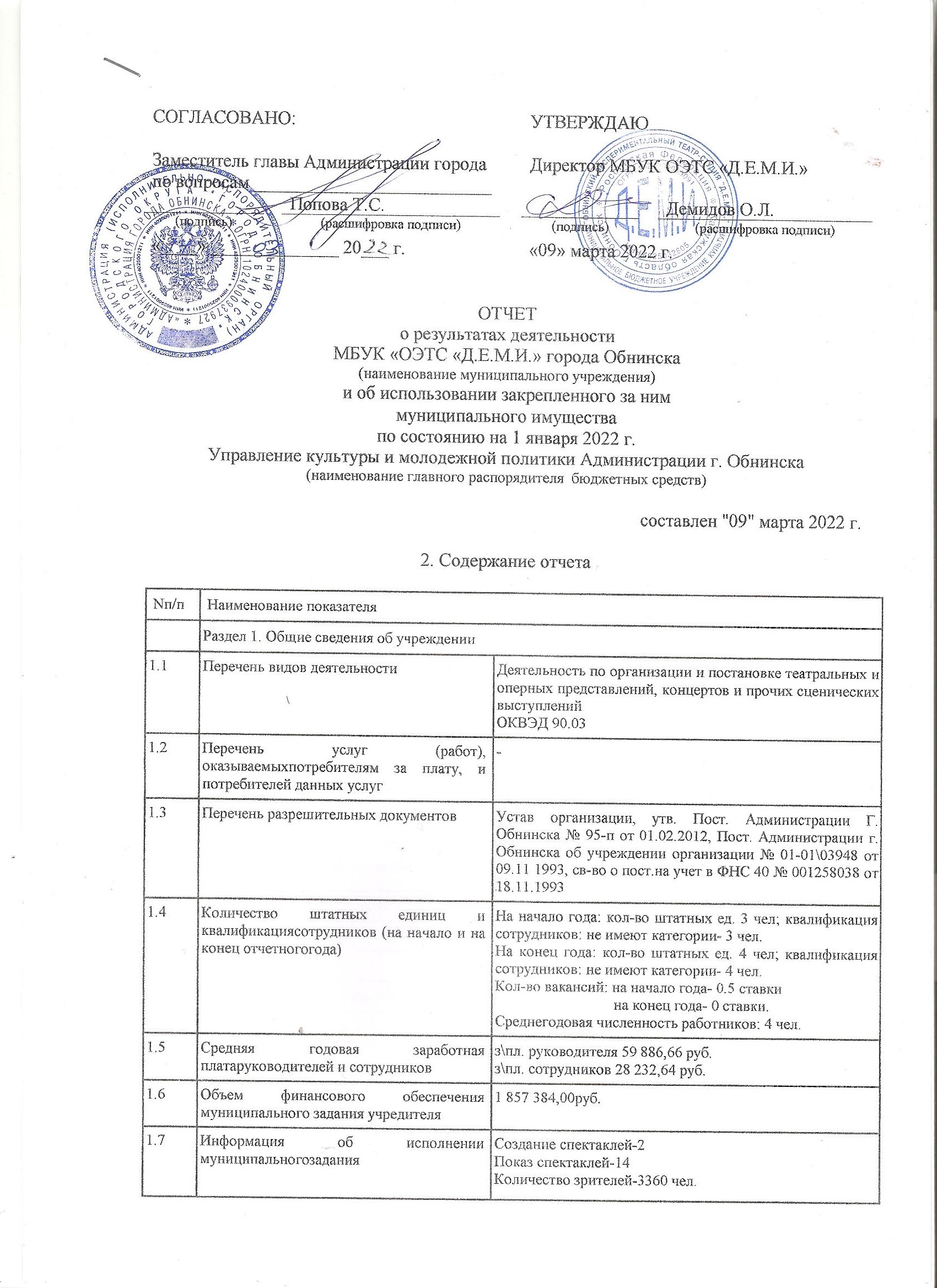 Отчет о результатах деятельности и об использовании закрепленного муниципального имущества на 01.01.2022г. (стр.1., стр.2, стр.3, стр.4)