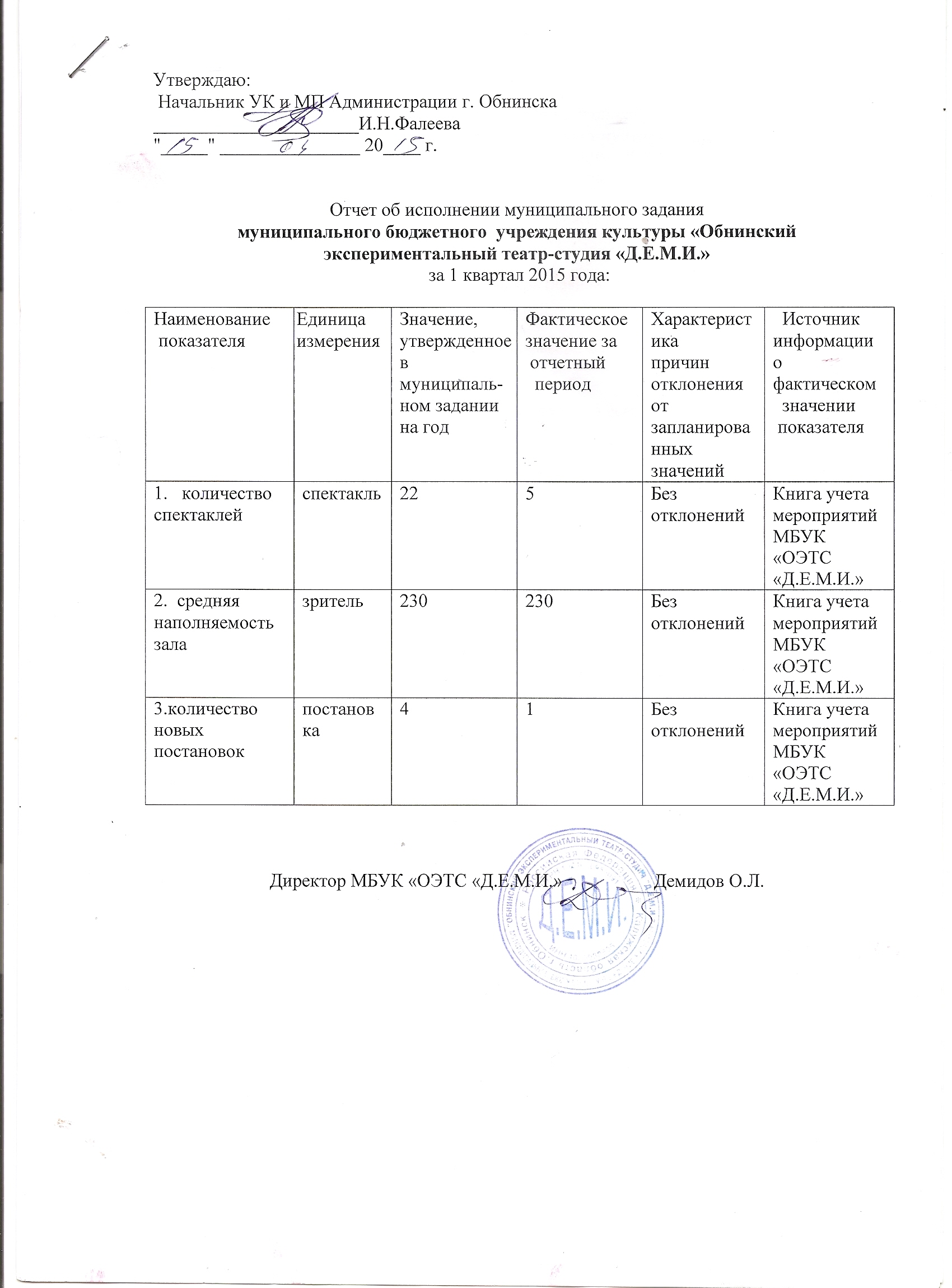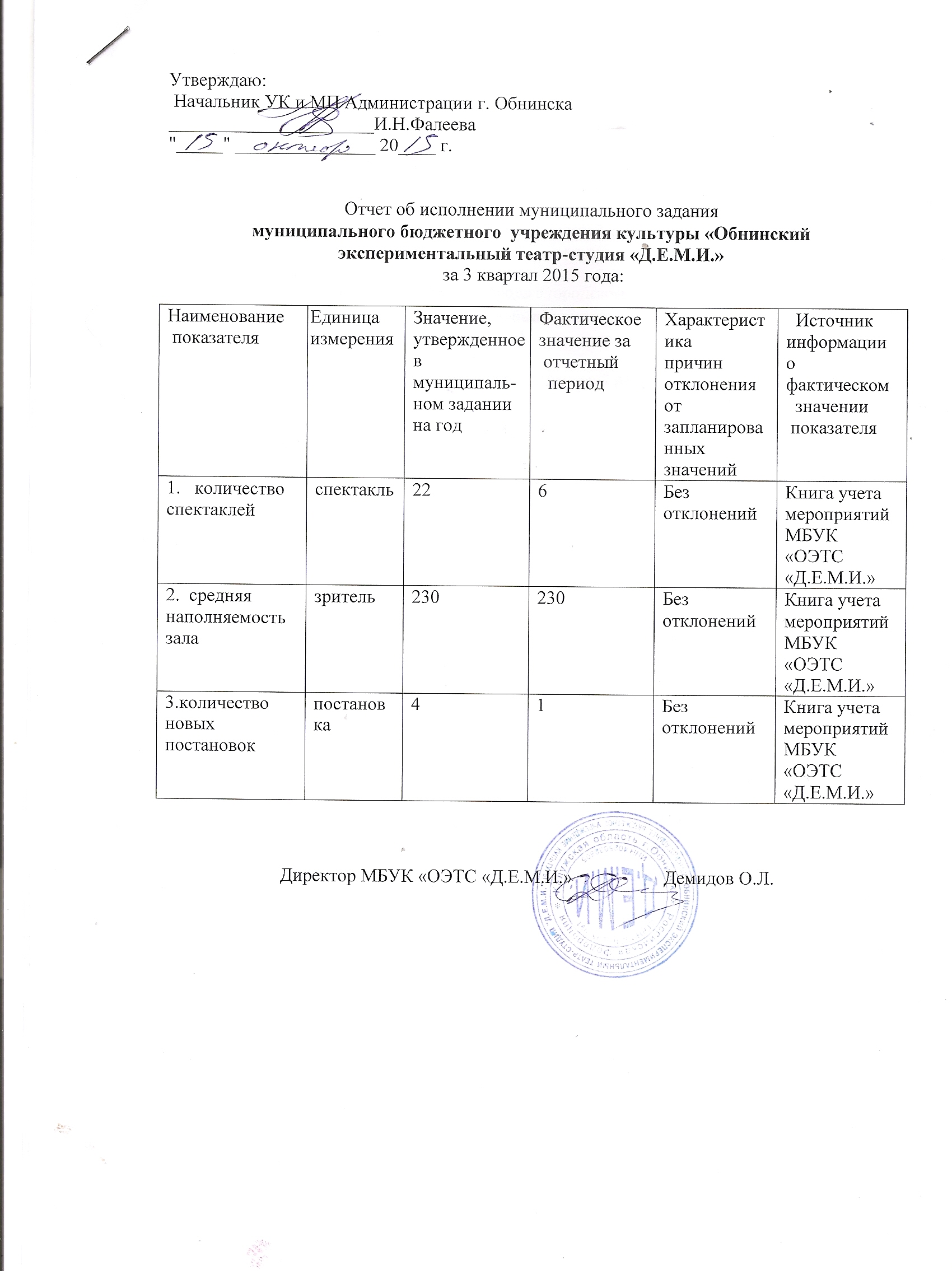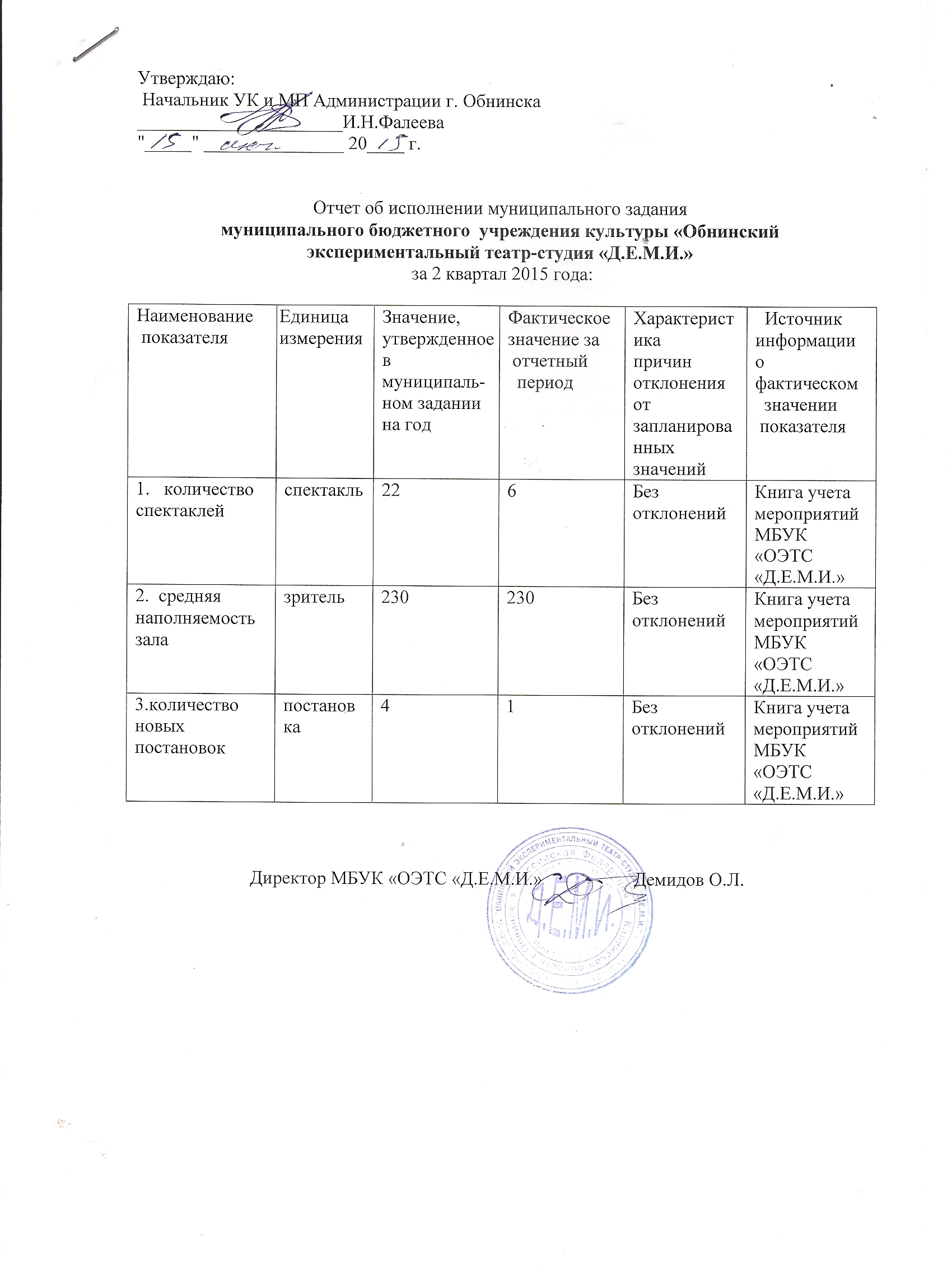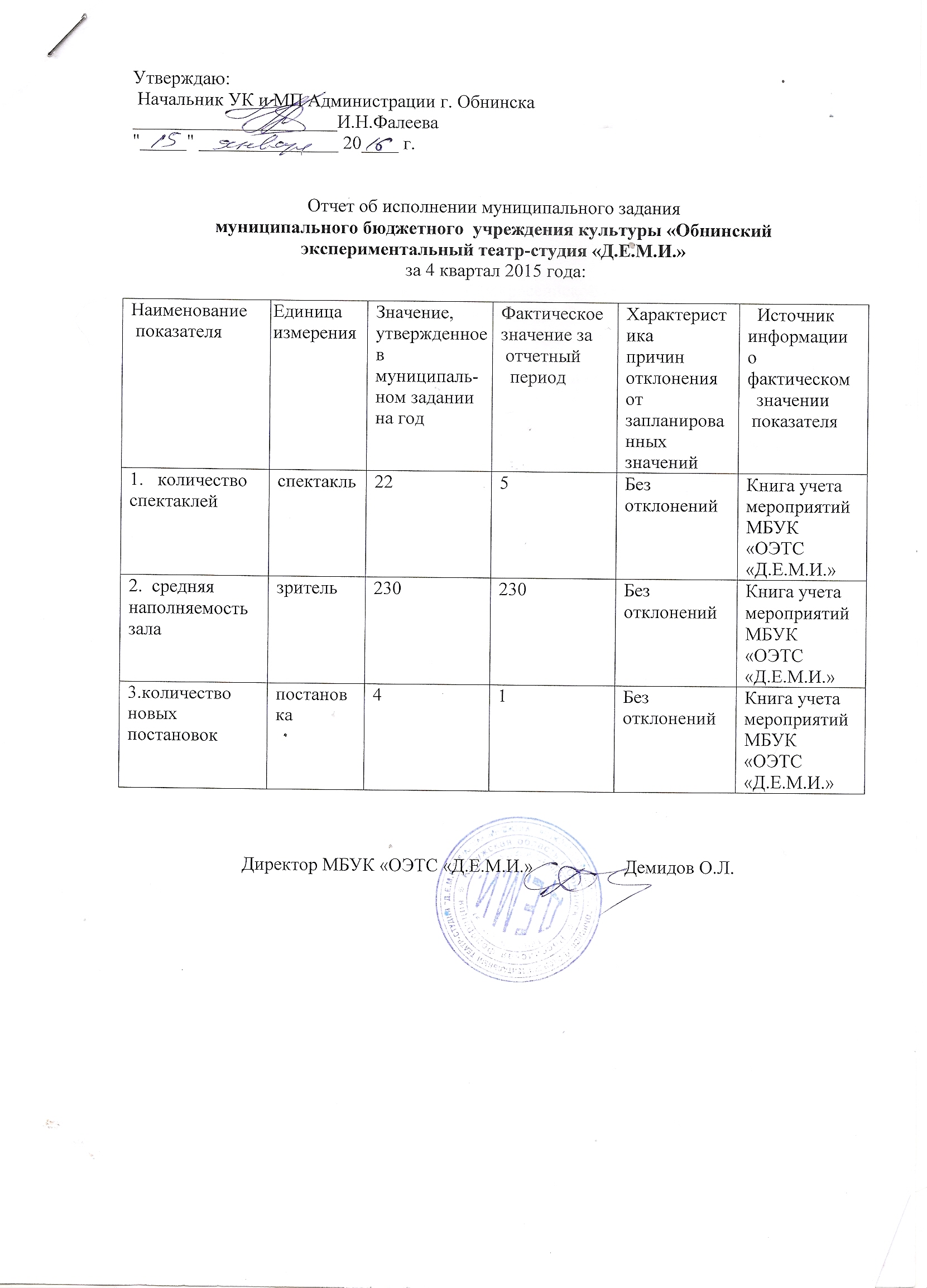 Муниципальное задание МБУК ОЭТС "Д.Е.М.И." на 2015 год