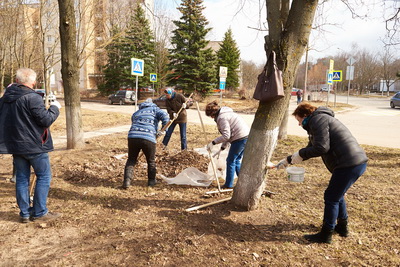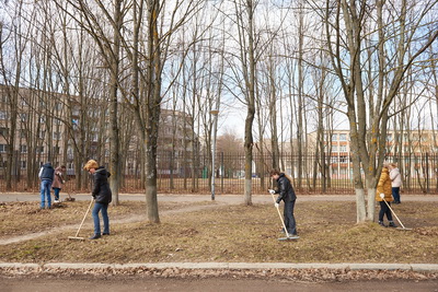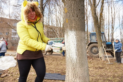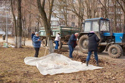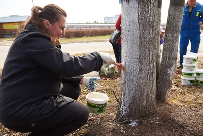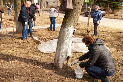 Работники предприятия очистили территорию от прошлогодней листвы, убрали бытовой мусор, очистили тротуары от смета, а также побелили стволы деревьев.