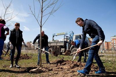 «Парк Победы» возродил добрую традицию – возможность для каждого посадить свое дерево в память об участниках войны. Так, 29 апреля в едином порыве на посадку новых деревьев и кустарников в Парке Победы вышли все неравнодушные и любящие свой город люди: с утра в Обнинск на пр. Маркса привезли более 1200 саженцев. Было высажено 68 крупномеров различных пород: бархат амурский, клен красный, сахаристый, ива ломкая и ива плакучая, а также несколько видов кустарника. Саженцы были приобретены на средства организаций «Русский дом», «Обнинскоргсинтез», «Циолковский», «Квартал» и «Варвикс». Руководители и сотрудники этих компаний также приняли участие в посадке саженцев.
