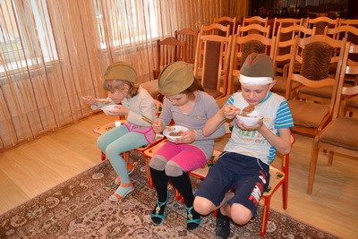 В конце апреля воспитанники Центра побывали на обзорной экскурсии, посвященной годам Великой Отечественной войны в Калужском крае. Сотрудник музея истории города Обнинска рассказала детям о героических подвигах наших земляков в те далекие тяжелые годы. Также мальчишки и девчонки Центра посетили ДК «Алые Паруса», где для них был организован просмотр фильмов военных лет. Волонтеры из общественной организации «Луч Света» совместно со специалистами Центра организовали и провели для ребят спортивную военно-патриотическую игру «Зарница». Разбившись на две команды, дети проходили военные испытания по станциям: оказывали первую медицинскую помощь «раненым», отвечали на исторические вопросы, соревновались в меткости на станции «Военный биатлон», проходили полосу препятствий на «заминированном поле», а после всех испытаний исполняли песни военных лет и подкреплялись «полевой» кашей на станции «Полевая кухня».