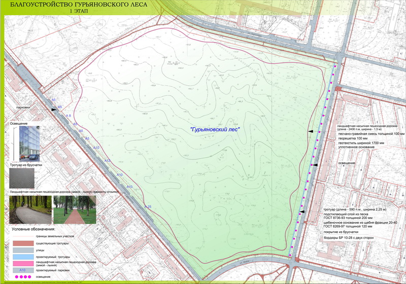 В рамках реализации программы «Формирование современной городской среды» муниципальной программы МО «Город Обнинск» «Благоустройство города Обнинска» Администрацией города разработаны эскизы благоустройства Гурьяновского леса и пешеходной части проспекта Маркса.