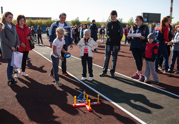 На стадионе работали различные развлекательные площадки. Дети и подростки с удовольствием пробовали свою меткость в задании «Кольцеброс», пробуя накинуть кольца на штырьки в количестве, равном цифрам номера телефона доверия: «8», «2», «1».