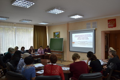 Основная тема заседания: «Моделирование воспитательно-реабилитационного пространства (далее ВРП) в учреждениях социальной помощи семье и детям». Методологические основы разработки модели ВРП, варианты управления процессом педагогизации деятельности субъектов воспитательно-реабилитационного пространства были представлены для специалистов начальником Центра дополнительного профессионального обучения ИАТЭ НИЯУ МИФИ кандидатом педагогических наук, доцентом Ощёхиной О.В.