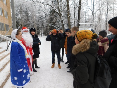 Воспитанники Центра «Милосердие» и учащиеся школ №7 и №12 города Обнинска в рамках областной акции «Закон и порядок» посетили ОМВД России по городу Обнинску. Cтражи порядка к встрече с подростками подошли творчески, встретили и выступили перед школьниками в образах главных новогодних персонажей – Деда Мороза и Снегурочки. Ребят встречали помощник начальника по работе с личным составом Неказакова, постовой службы Сергей Шарыгин и инспектор по работе с личным составом Наталья Антонова. Стражи порядка заранее подготовились к празднику и даже сшили костюмы своими руками.