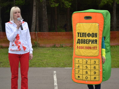 На регистрации всех радушно встречали организаторы и ростовая кукла Телефон доверия, создавая атмосферу праздника и хорошего настроения.