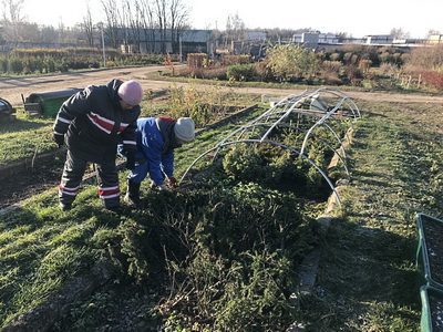 В связи с окончанием работ по озеленению на территории службы проводится работа по заготовке земляной смеси для посева рассады и заготовке лапника для укрытия растений, произрастающих в питомнике.