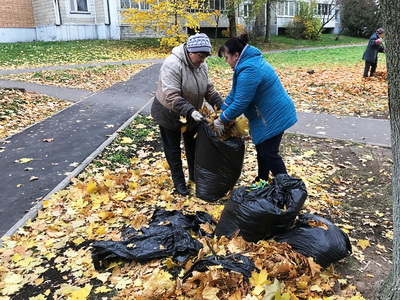 Активисты местного самоуправления подметали дорожки, очищали от листвы детские и спортивные площадки, собирали сломанные ветки и бытовой мусор. Инвентарь для субботника предоставила Администрация города, контейнеры для мусора установило МПКХ.