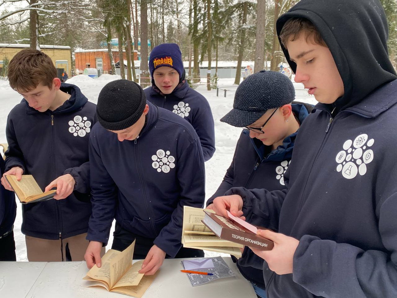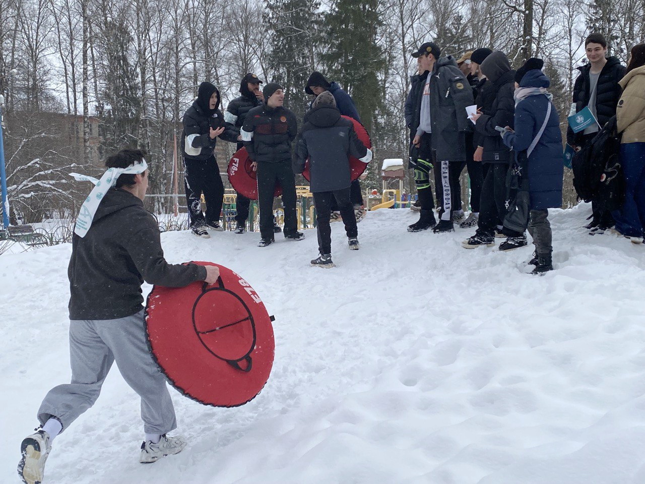 Переходя от станции к станции, ребята успели отыскать улики, пересказать своей команде историю с помощью жестов и мимики, расшифровать фразу по книгам, пройти мини-эстафету в костюме матрешки и даже прокатиться с горы на тюбинге.