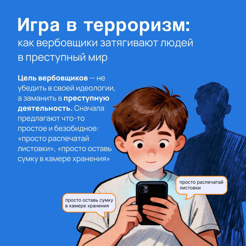 Подробнее о методах вербовки смотрите в карточках, подготовленных студентами Калужского коммунально-строительного техникума им. И.К. Ципулина совместно с Министерством образования и науки региона.