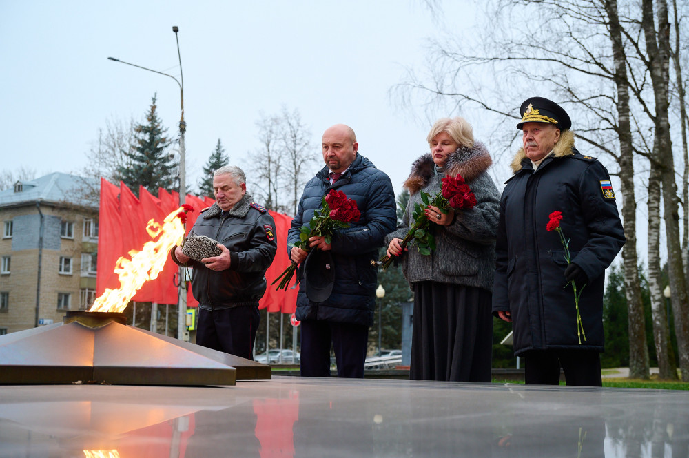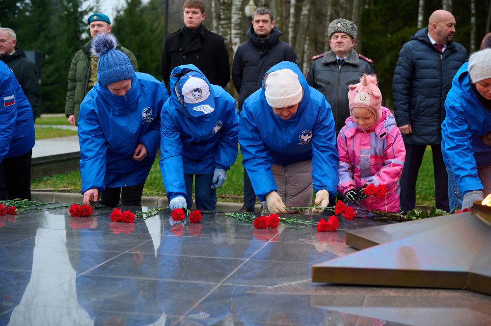 Участники мероприятия почтили память павших защитников минутой молчания и возложили цветы к Вечному огню.