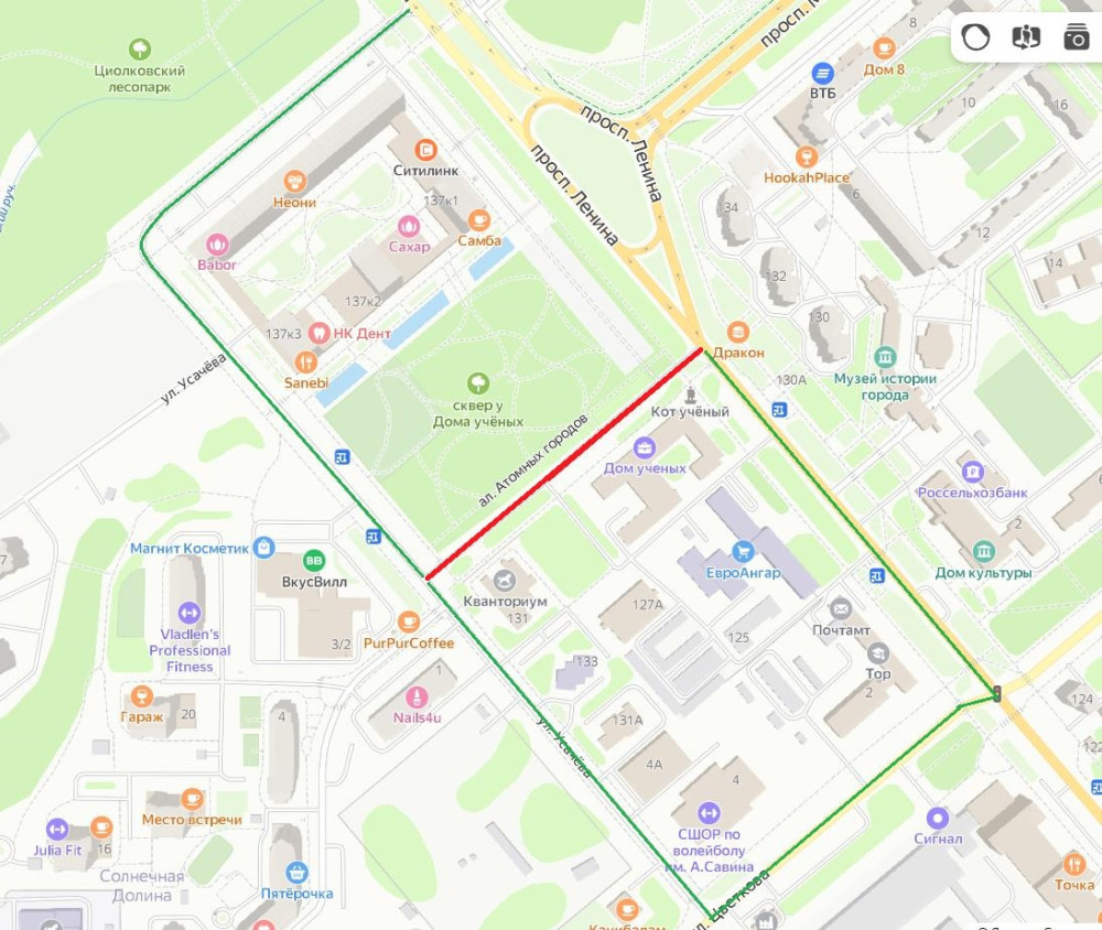 20 декабря с 8:00 до 22:00 будет закрыто движение транспорта вдоль Дома учёных (от пересечения с пр. Ленина до пересечения с ул. Усачёва).