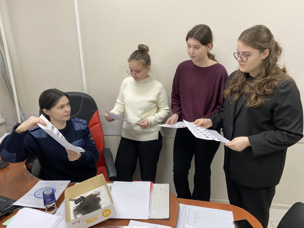 В следственном отделе студентам рассказали, как расследуются уголовные дела, какими документам руководствуются в работе, о целях и задачах работы следователей. Студентам объяснили и показали, как проводится дактилоскопирование и для чего нужны отпечатки пальцев, а также продемонстрировали, как проводится осмотр записей с камер видеонаблюдения, который является одним из следственных действий.