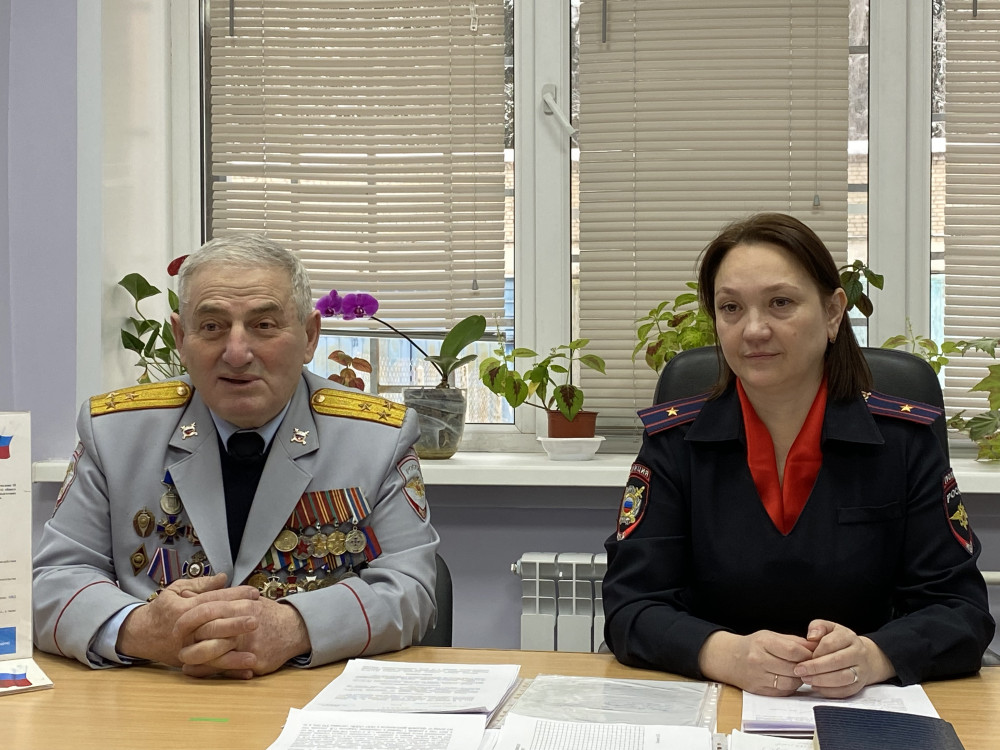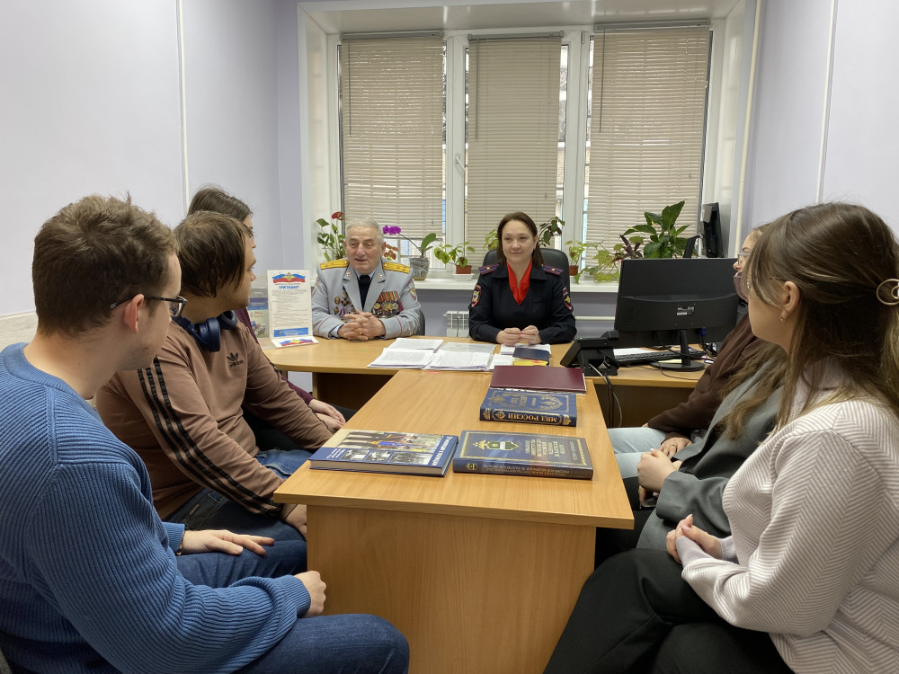 Ветеран, член Общественного совета Гимзери Дзадзамия поделился своим опытом службы со студентами. Стаж его службы в органах внутренних дел составляет 42 года. Гимзери Гиглович рекомендовал ребятам связать свою профессию с борьбой с преступностью, добросовестно работать на благо граждан, защищать их права и свободы, обеспечивать законность и правопорядок.