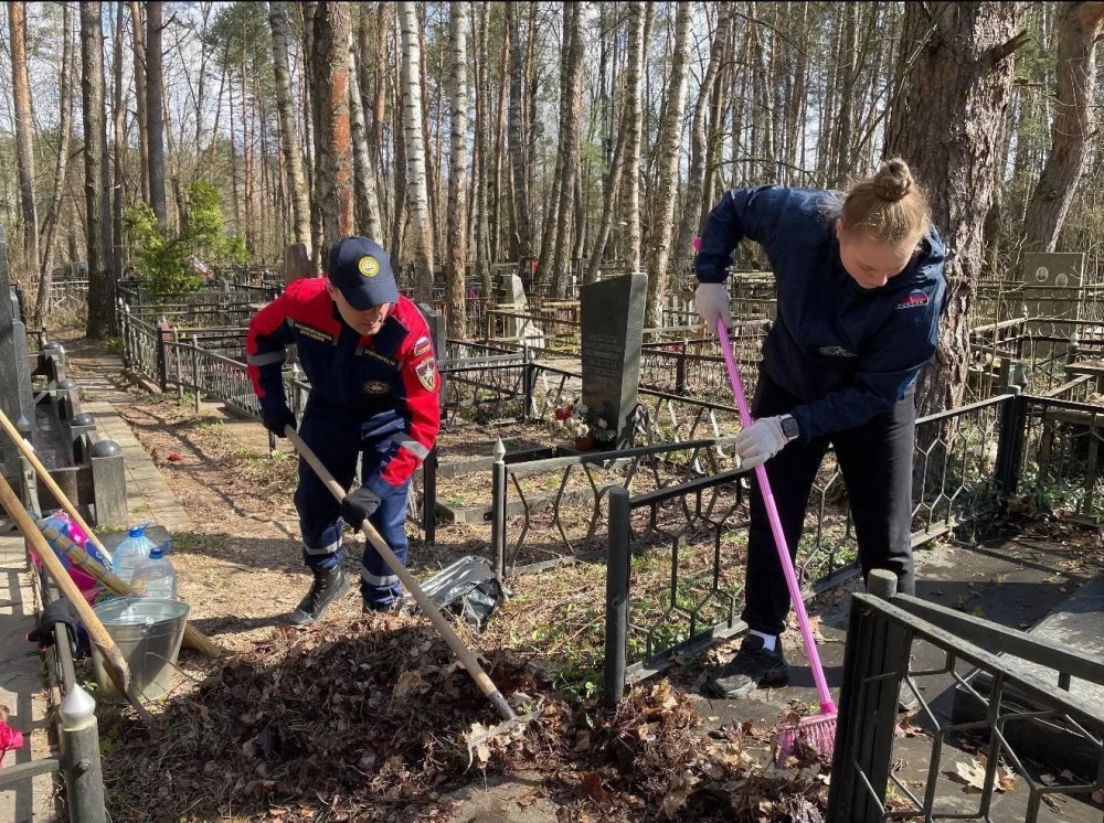 Волонтёры провели субботник на Кончаловском кладбище. Убрали опавшую листву и ветки, очистили территорию от мусора, тщательно отмыли могильные плиты и металлические ограждения участников ВОВ.