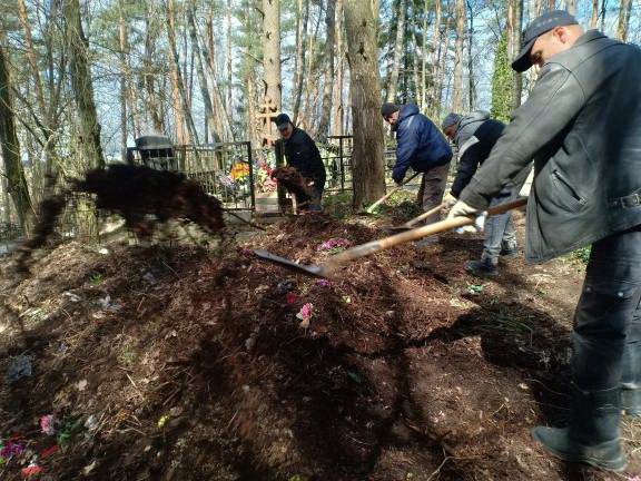 Несмотря на то, что уход за городскими кладбищами, осуществляется постоянно, в этот раз особое внимание уделили городским кладбищам «Кончаловские горы» и «Передольское», а также территории самого предприятия.