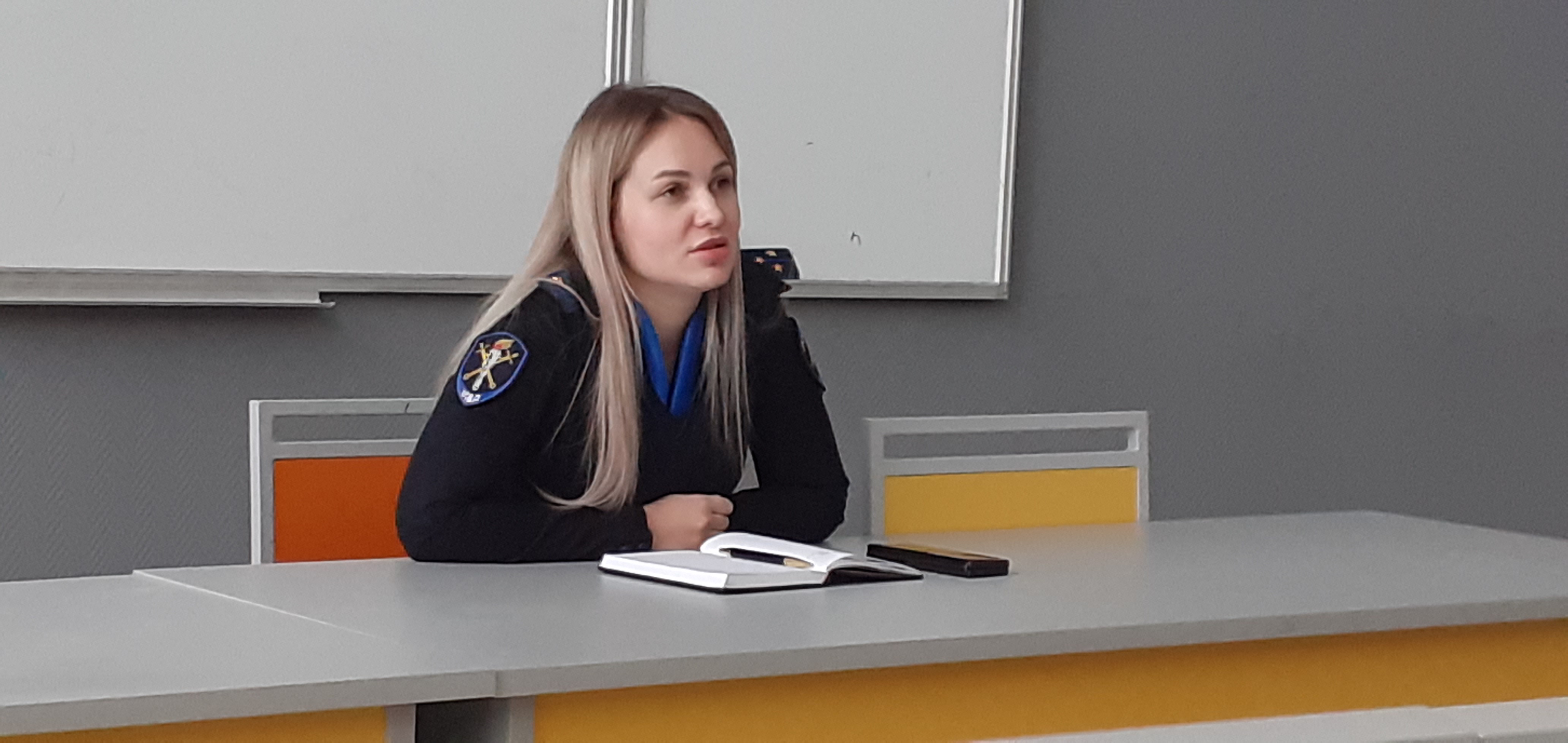 Во время беседы ребятам рекомендовали проявлять свою гражданскую ответственность и сообщать в дежурную часть полиции о совершении преступлений или правонарушений. Сотрудник силового ведомства привела при этом положительный пример, когда один и студентов вовремя сообщил информацию, став очевидцем преступления, и его показания помогли изобличить виновного.