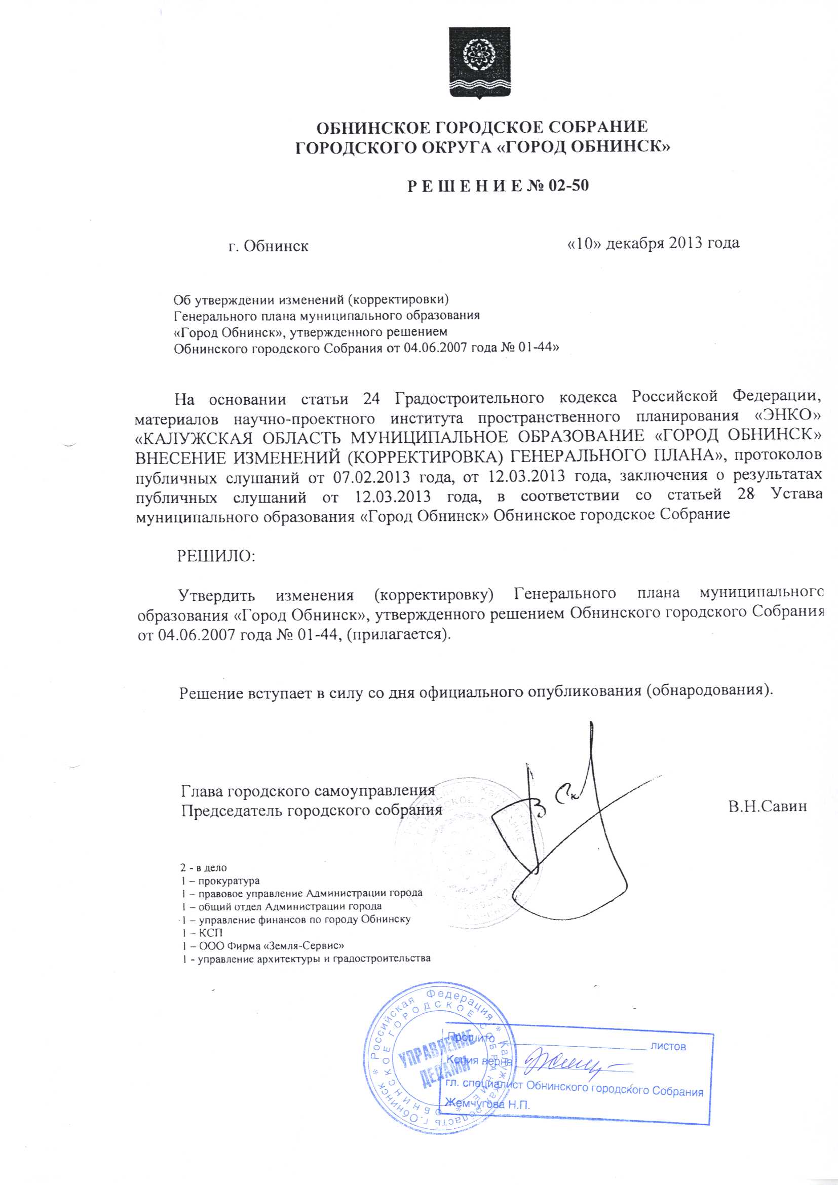 Решение Обнинского городского Собрания от 10 декабря 2013 года № 02-50 (скачать)