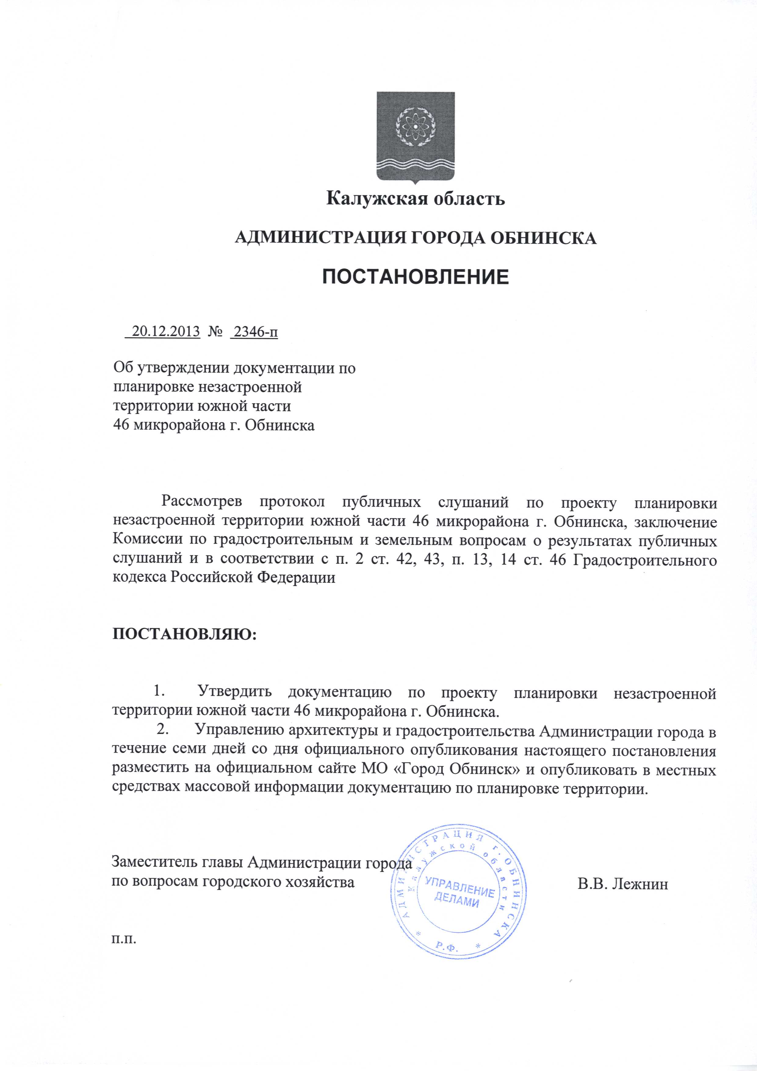 Проект планировки незастроенной территории южной части 46 мкр. города Обнинска