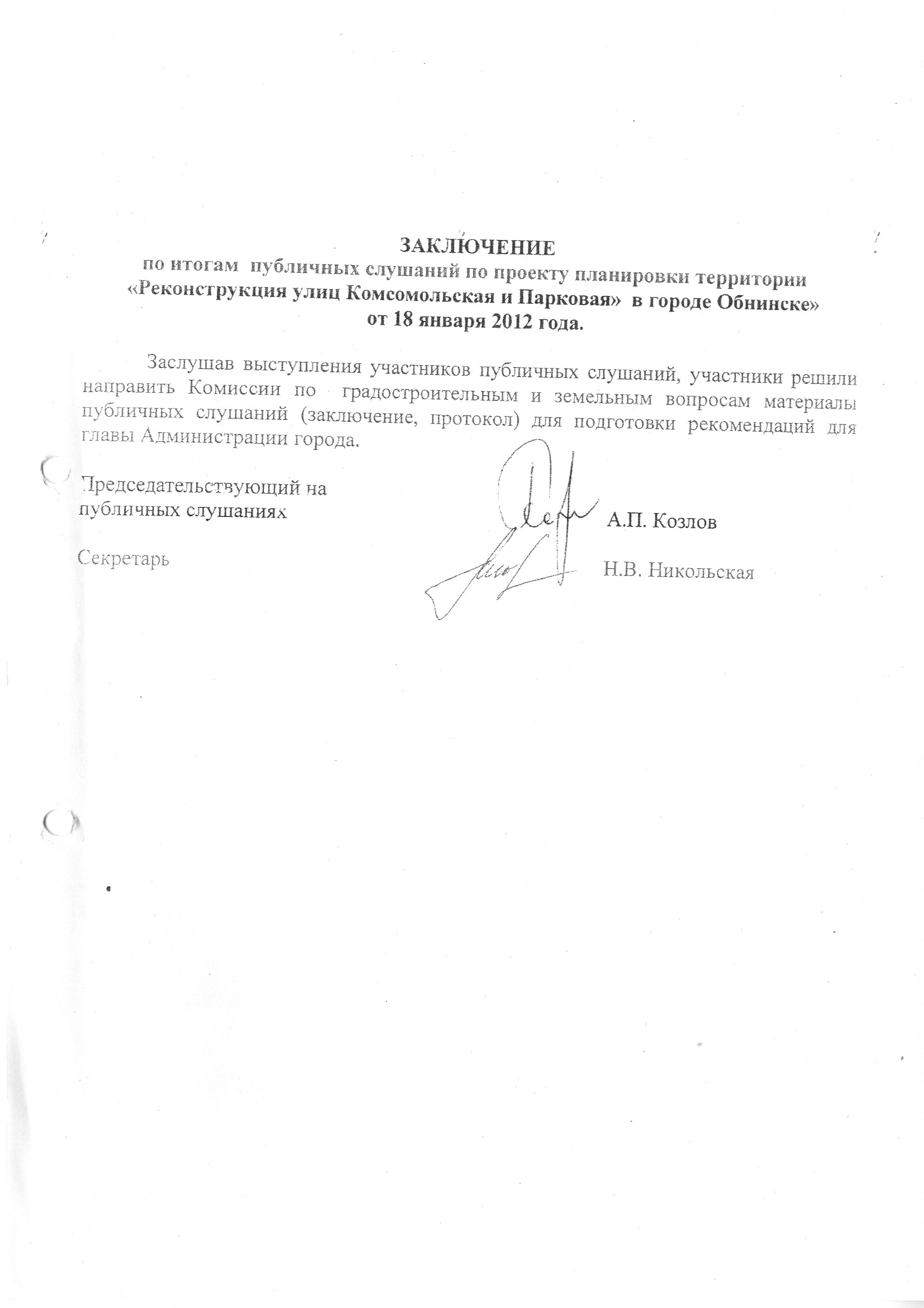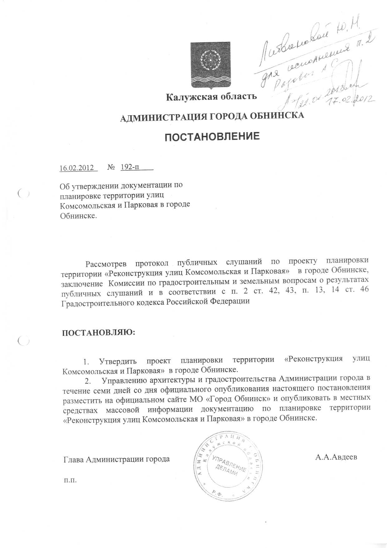 Проект планировки территории "Реконструкция улиц Комсомольская и Парковая в г. Обнинск"