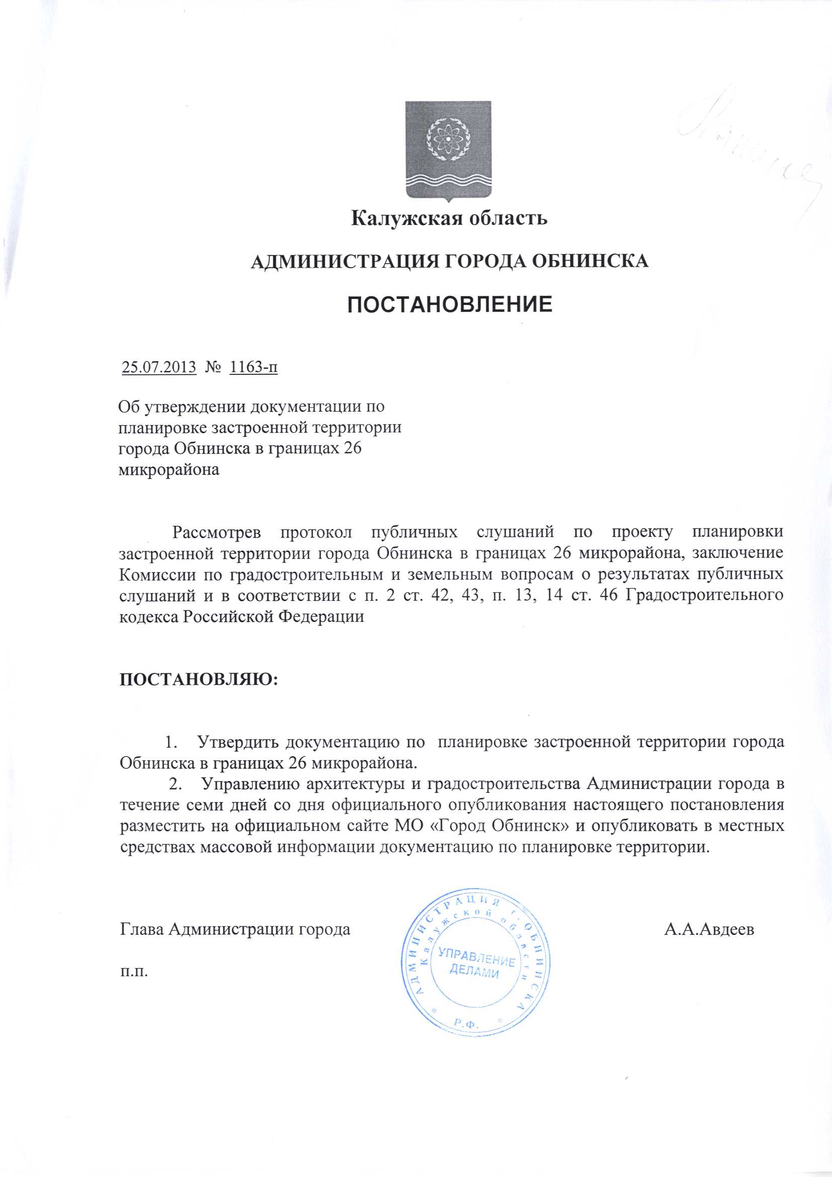 Схема расположения территории в генеральном плане города Обнинска (скачать)