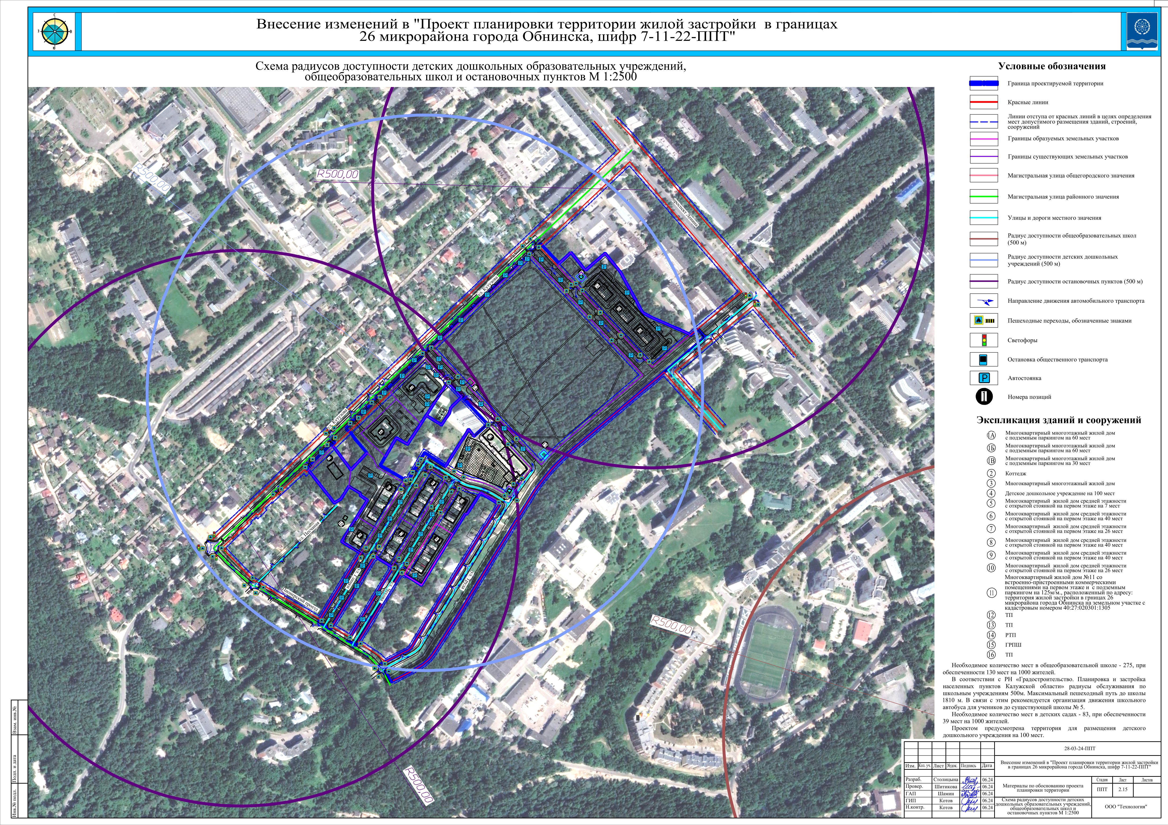 Схема радиусов доступности детских дошкольных образовательных учреждений, общеобразовательных школ и остановочных пунктов (скачать)
