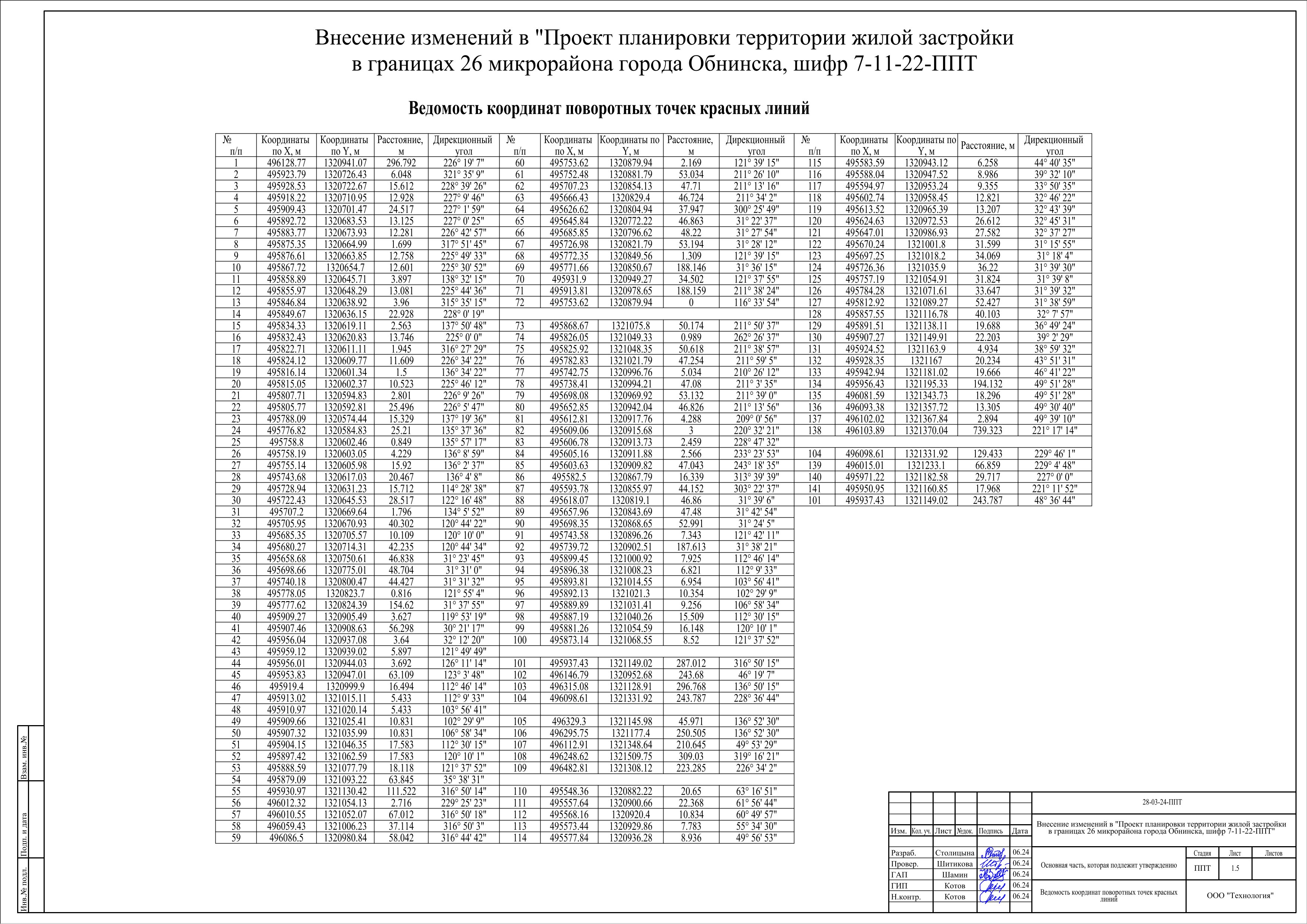 Ведомость координат поворотных точек красных линий (скачать)