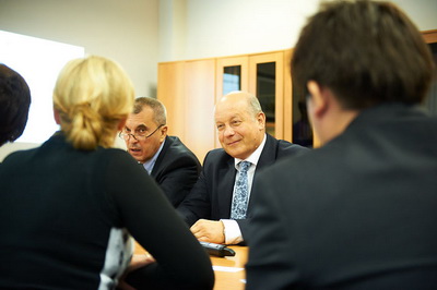 02 марта финская делегация встретилась в Калуге с Заместителем Губернатора Калужской области М.Л. Шерейкиным и Министром образования и науки Калужской области А.С. Аникеевым. В ходе продолжительной беседы были обсуждены вопросы взаимодействии Калужской области с г. Ювяскюля в области инновационного развития, переподготовки и повышения квалификации работников сферы образования и государственных и муниципальных служащих по программам, совместно проводимым Университетом Прикладных наук г. Ювяскюле, ФРИДАС и ОФ ГУУ.